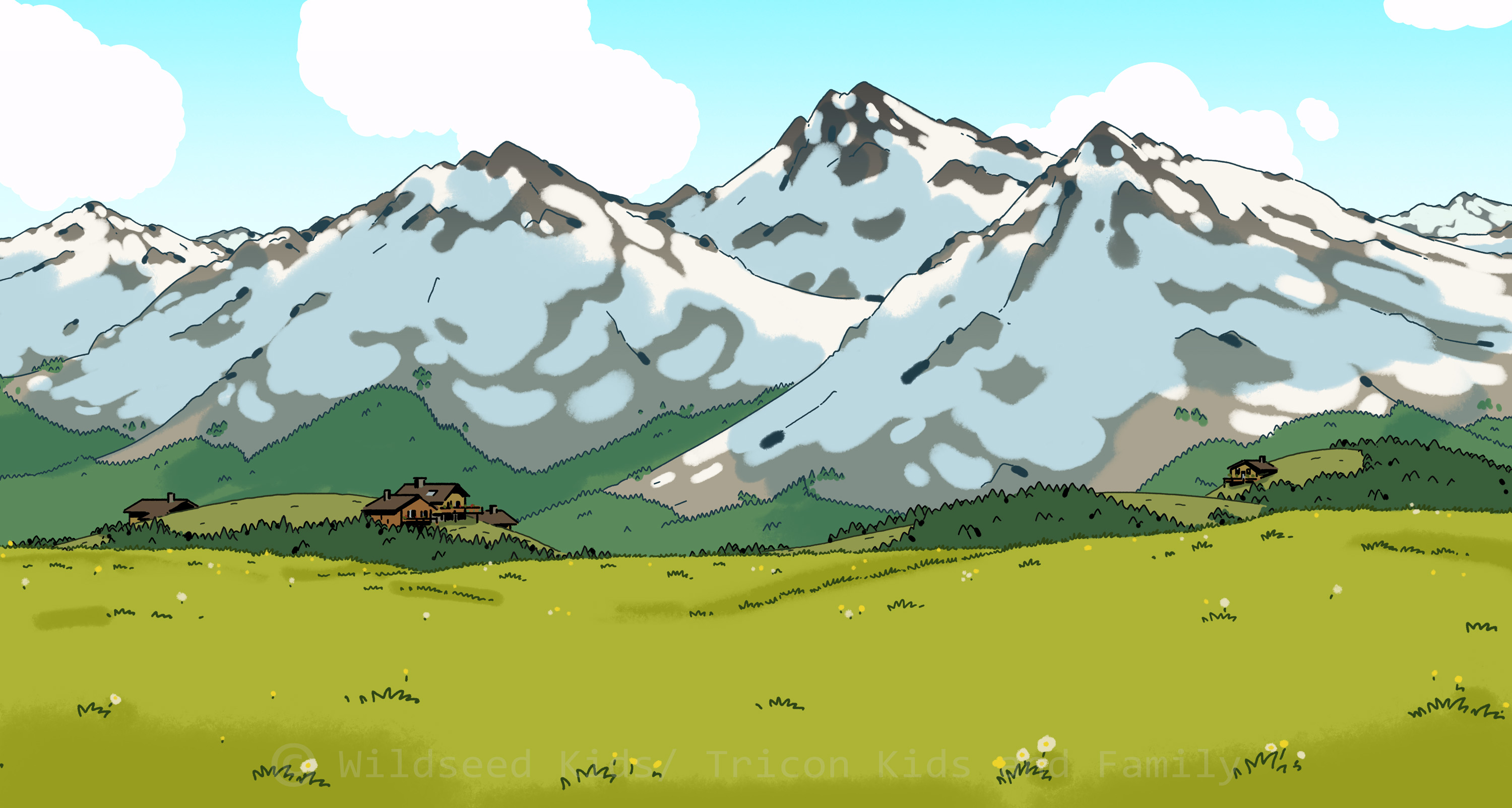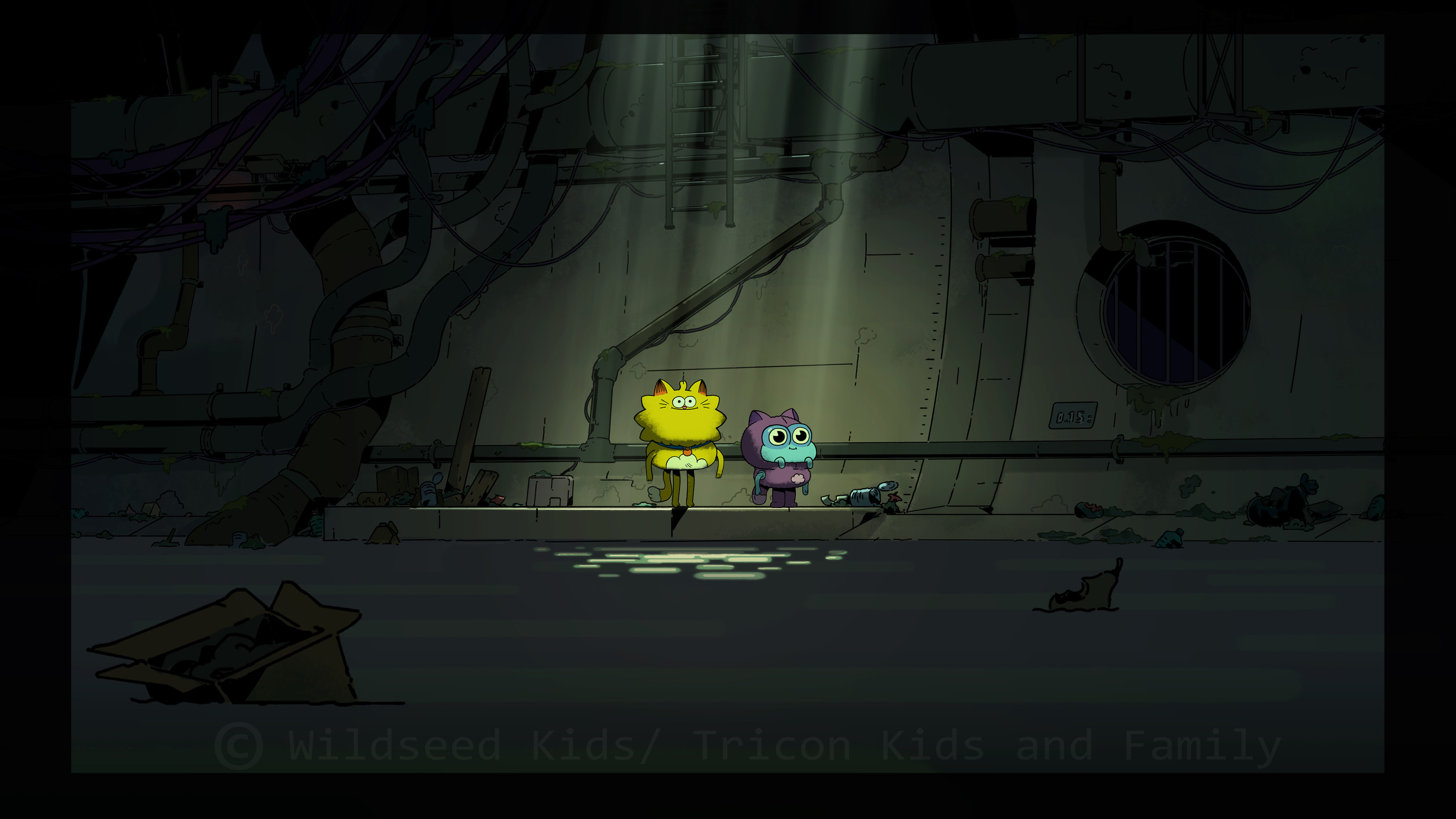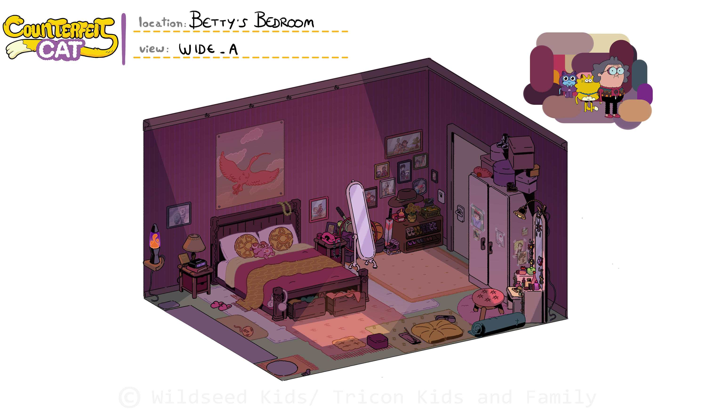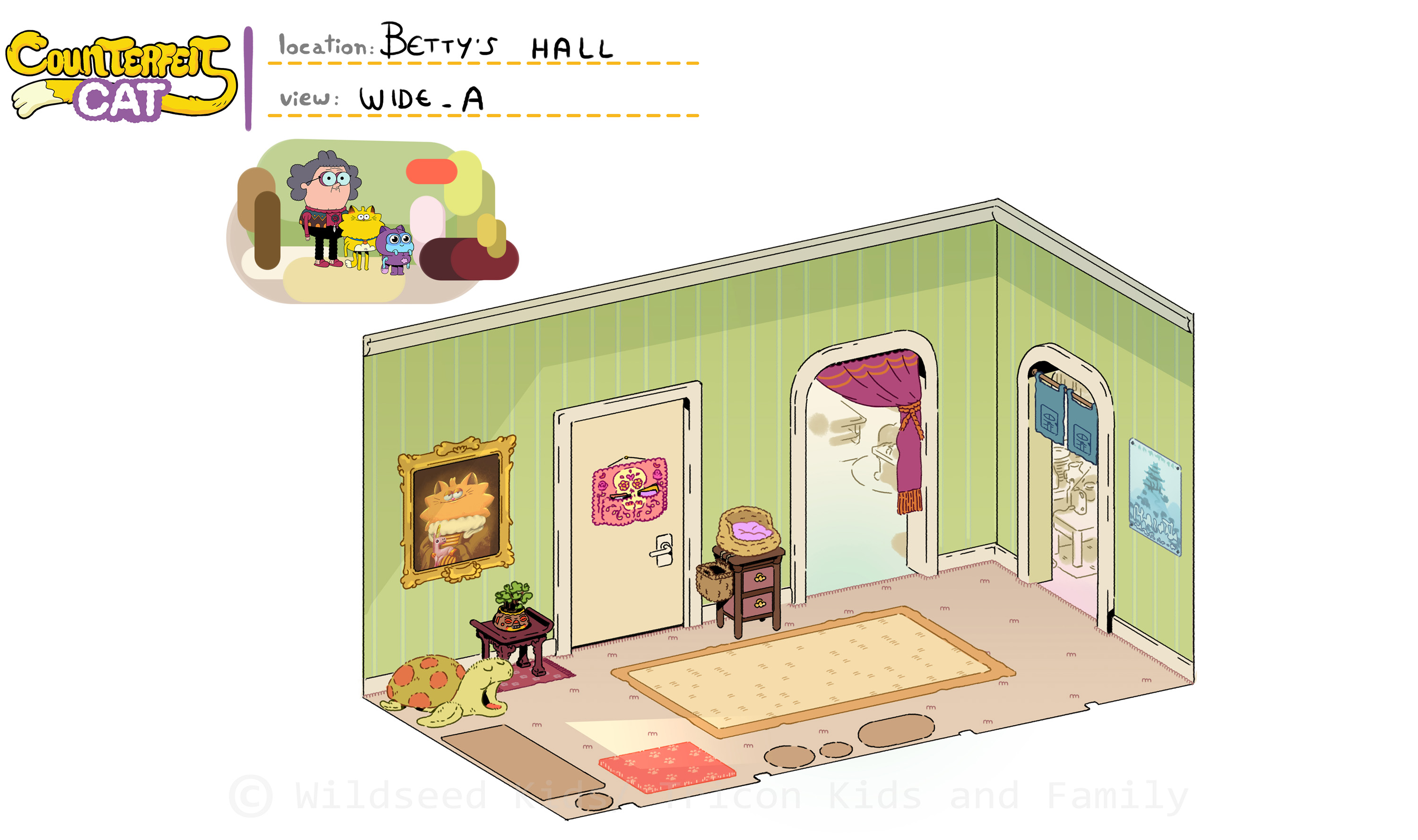 I was co-art director (with Raphael Chabassol for characters) on Counterfeit Cat, a TV show for disney Channel/Teletoon directed by Ben Marsaud Wildseed Studios, developping the environments and background style during preproduction and then leading the background design team during production. Below are some of the background artworks I created.