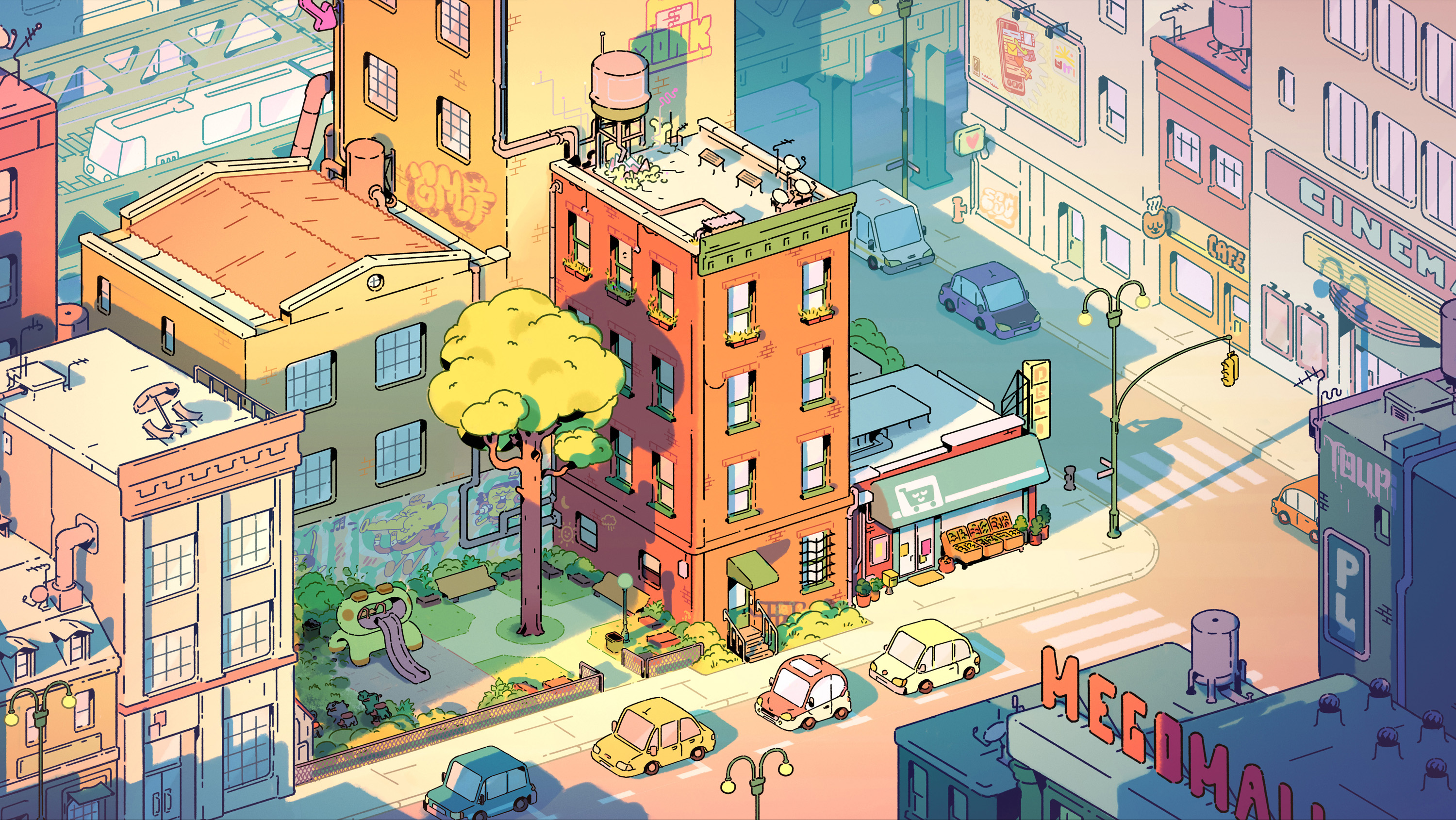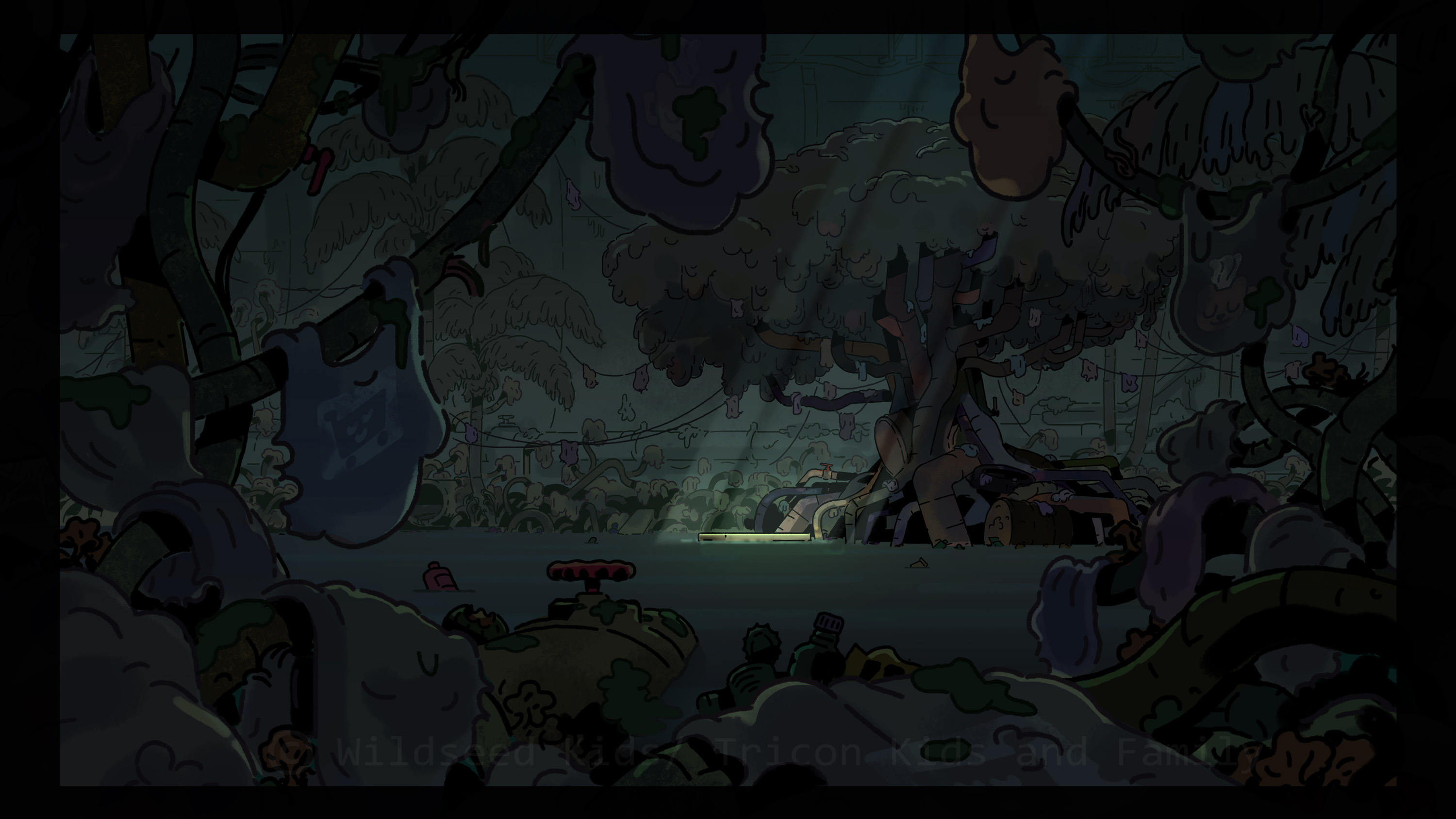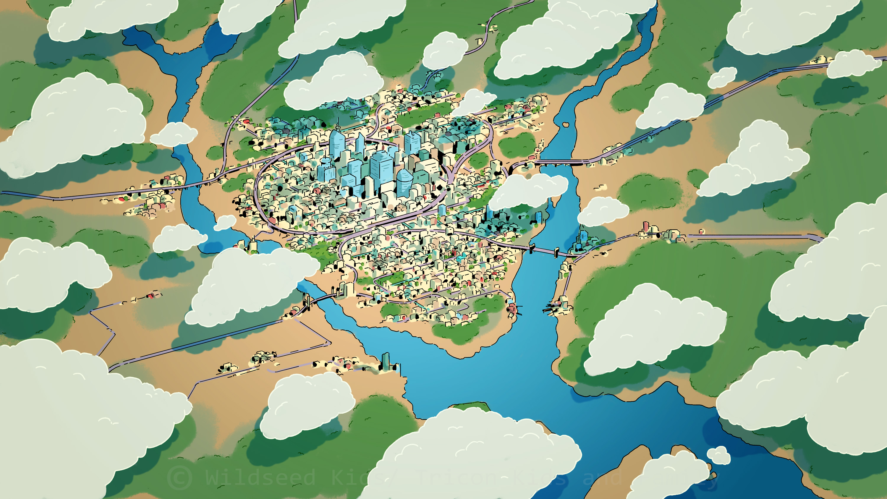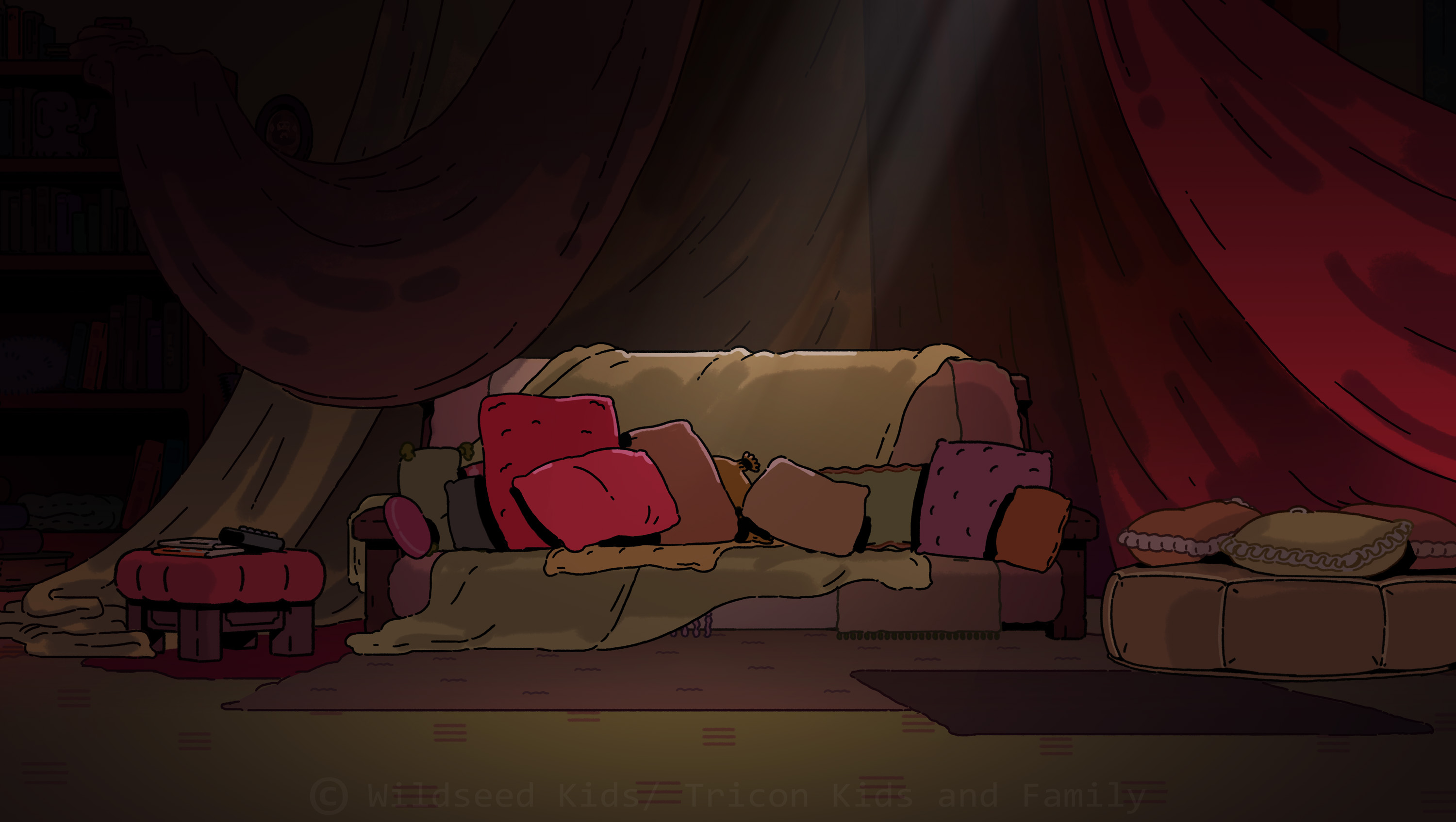 I was co-art director (with Raphael Chabassol for characters) on Counterfeit Cat, a TV show for disney Channel/Teletoon directed by Ben Marsaud Wildseed Studios, developping the environments and background style during preproduction and then leading the background design team during production. Below are some of the background artworks I created.